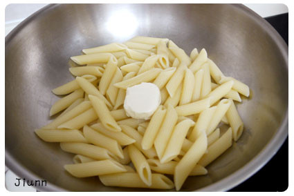 煮好後就和貝爾佩斯乾酪一起在鍋裡攪或一下讓乾酪融化~