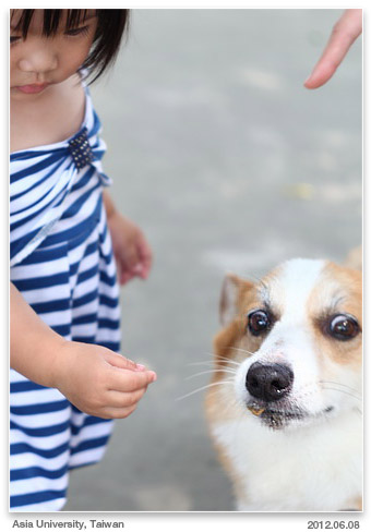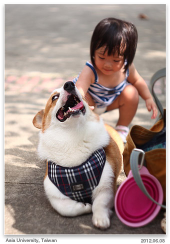 毛茸茸因為有武嘎葛格的關係,跟狗兒相處也是自在,只要是科基都是她的葛格~