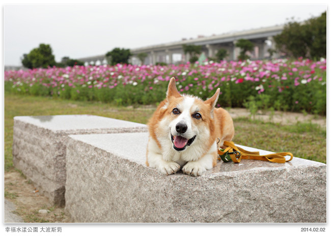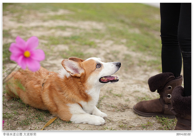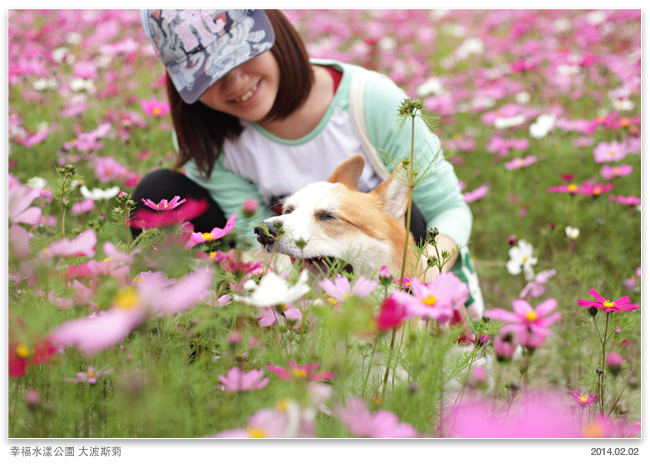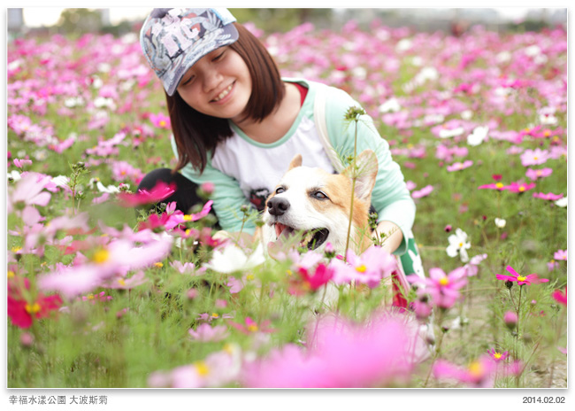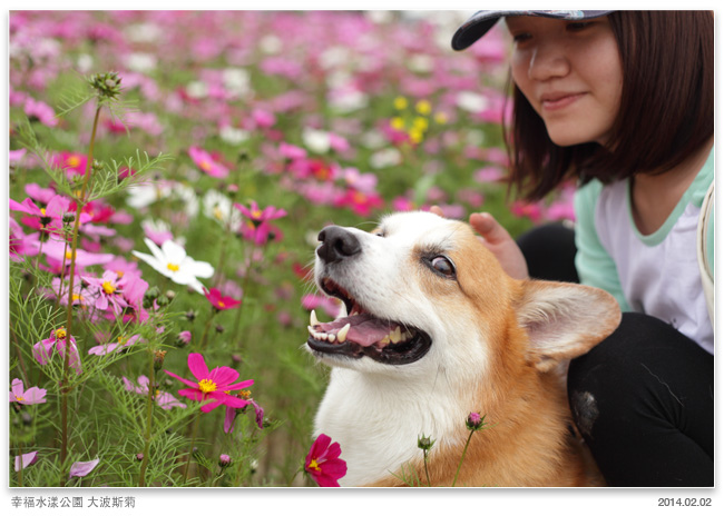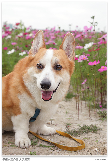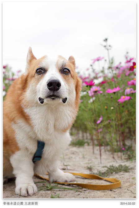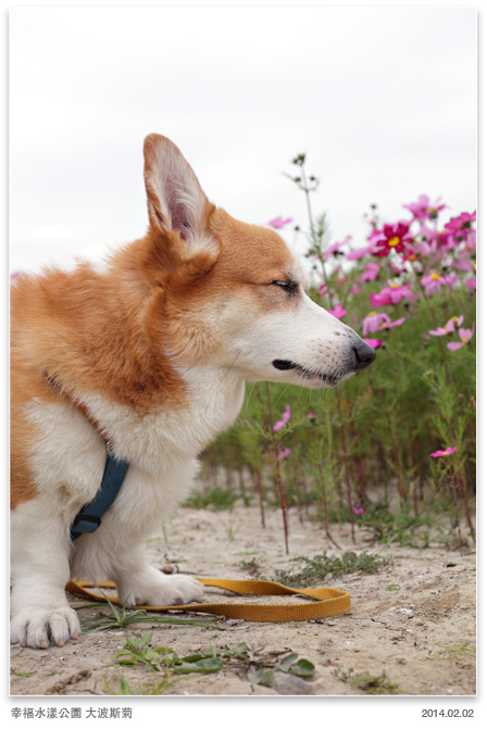 這麼矮的狗,總是要這種不高的花比較好拍呀~XD